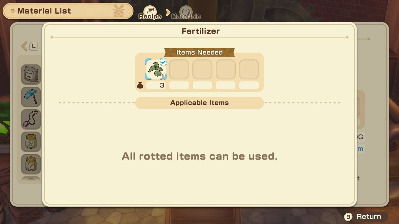 But rotten items can be processed in the windmills to create fertilizer, giving them a small secondary use instead of discarding them as trash.