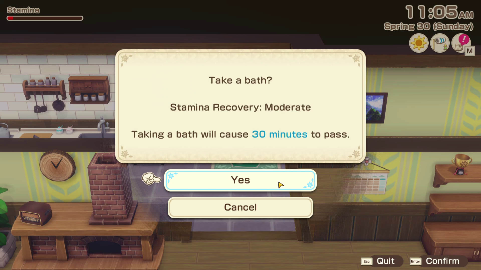 Bathing in your home bathtub is a free way to recover your Stamina.