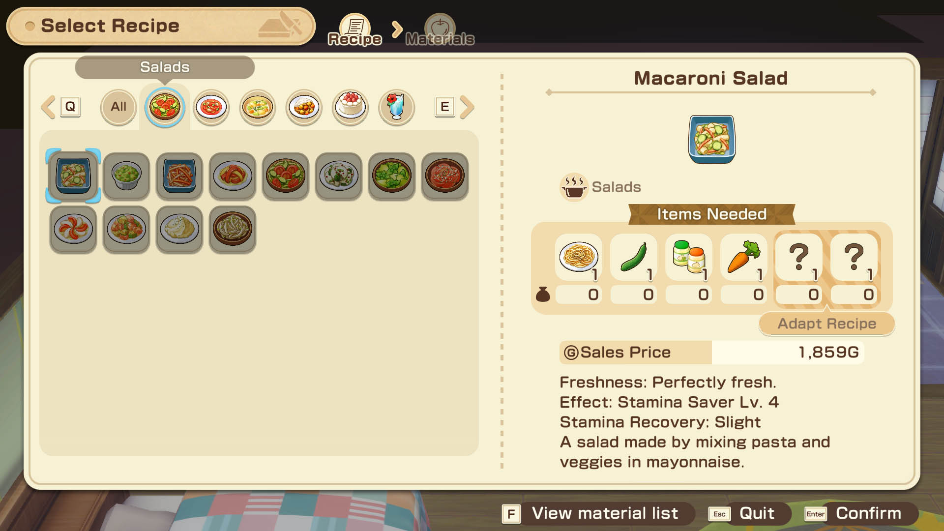 | Level | Stamina Saved Per Action | Recipes |