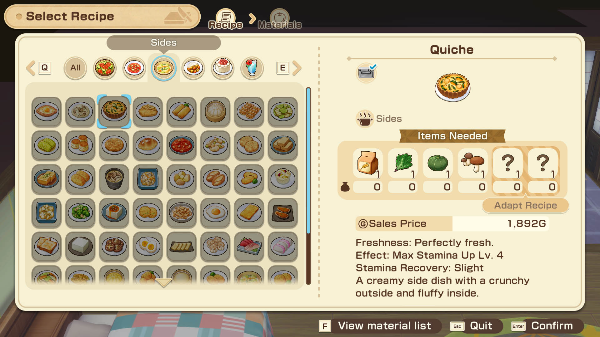 | Level | Max Stamina Increase | Sample Recipes |